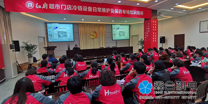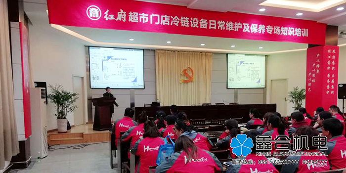 2019年3月29日,由安徽商之都紅府超市組織的《冷鏈設(shè)備日常維護及保養(yǎng)》專場培訓(xùn)會在合肥召開。安徽鑫合機電設(shè)備有限公司溫曉慧總經(jīng)理、商超事業(yè)部詹金保經(jīng)理、張鵬經(jīng)理應(yīng)邀參加此次培訓(xùn)會,并為紅府超市各門店店長及生鮮科科長進行制冷專業(yè)知識培訓(xùn)。